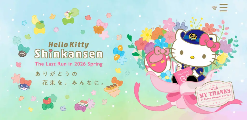 The Hello Kitty Shinkansen is retiring in spring 2026, after 8 years in service along the Sanyō Shinkansen route between Shin-Osaka and Hakata. The final date isn’t confirmed yet, but JR West has already announced a farewell campaign. There will also be special merchandise and events on the train.